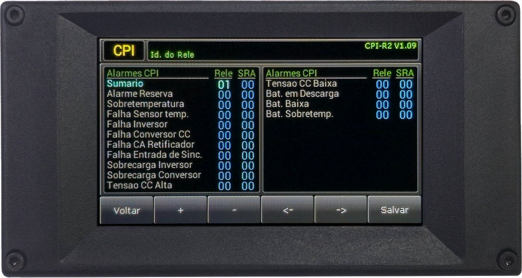 Configura e externa, para a placa de relés KvR.SRA, os alarmes do sistema.